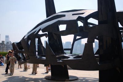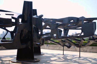 Earlier today, I visited the special exhibition at the Metropolitan Museum of Art called “FRANK STELLA ON THE ROOF,” featuring the recent works in stainless steel and carbon fiber by the prolific American artist Frank Stella (b. 1936) at the Iris and B. Gerald Cantor Roof Garden. This sculpture exhibition marks the artist’s first solo presentation at the Met, simultaneous with Frank Stella: Painting into Architecture, on view through July 29. The roof garden, aside from being an exciting outdoor space for sculpture, offers spectacular views of Central Park and the Manhattan skyline.