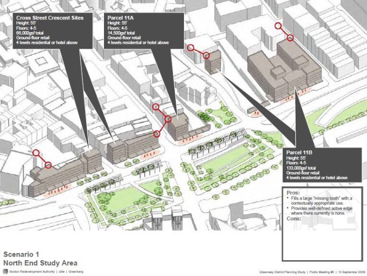The sculpture’s form echoes the history of its location. The three voids recall the “Tri-Mountain” which was razed in the 18th-century to create land from the harbor. The colored banding is a nod to the six traffic lanes that once overwhelmed the neighborhood, before the Big Dig buried them and enabled the space to be reclaimed for urban pedestrian life.