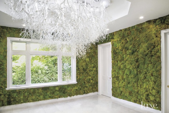 Moss Rug: Bathroom rug composed of forest moss, watered by the drops streaming along the legs and the environment’s humidity