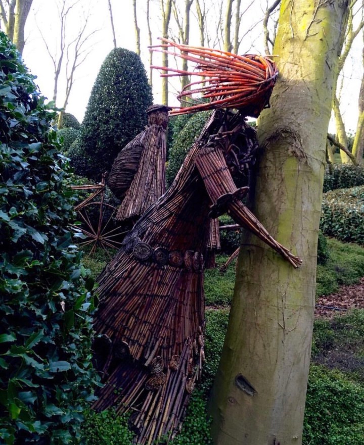 Tree Huggers’ Garden. In this sculpture composition by Wiktor Szostalo, people line up to hug the last tree on Earth. The project was conceived in 2005 and has since travelled around the world. Through a variety of images, the artist calls for the protection of nature. The sculptures were made with materials found in parks, including dried stems.